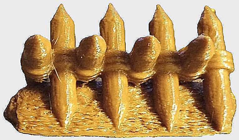 3d printed X barricade for use in table top games (TTRPG). For slowing down enemy troops thru out the battle field Dimensions 2.75x1.25x1.25. Each set will come with 5 barricades to place thru out the field to hinder enemy movements. Designed to resemble wood with dirt mounds for a base.